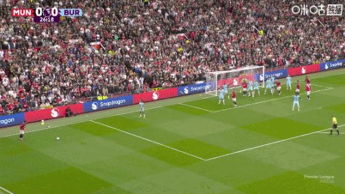 直播吧08月30日讯 曼联vs伯恩利第27分钟,B费任意球开出,